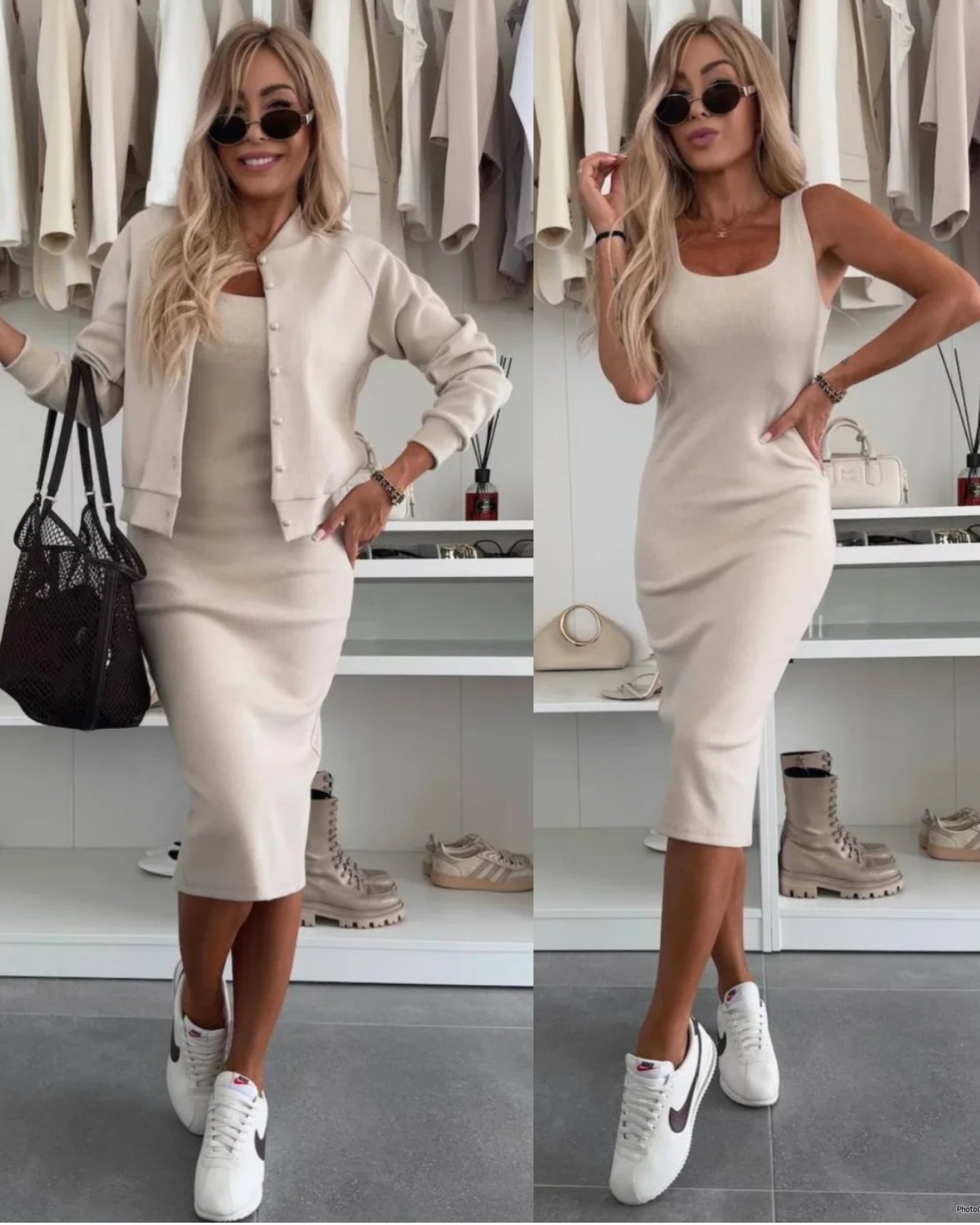 ✔️ Perfecte 2-in-1 – Midi-jurk + bomberjack voor een complete, altijd-ready look.